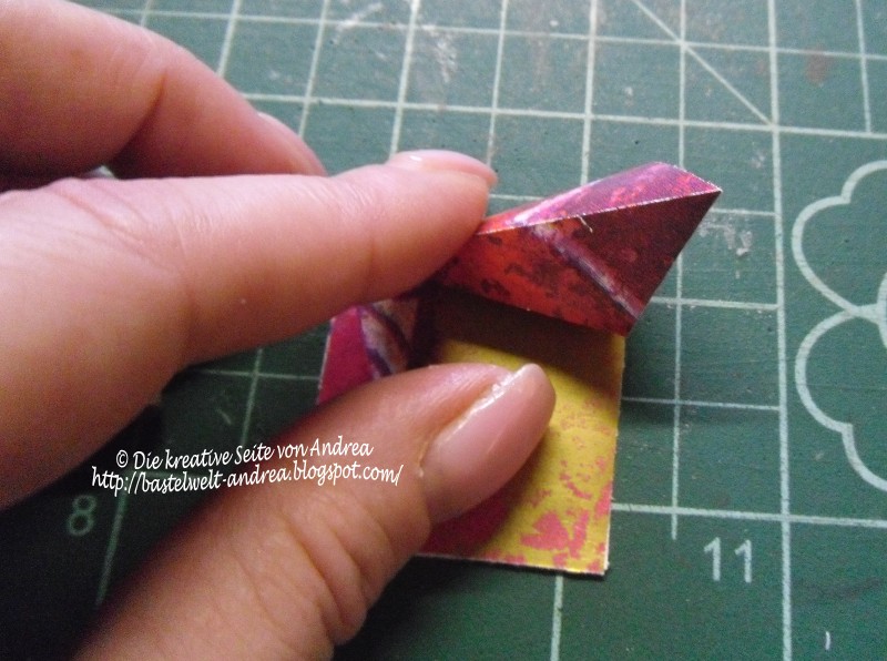 Then I fold the protruding corners as on 1 Photo is visible, and folds over it.