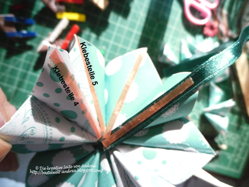 So our half-flower circle then looks out from the bottom, on the then equal to the other 5 flowers are appropriate. (Of course you can also stick together again until all 6 blossoms into a semi-circle, but it is much harder, this will affixed to the other, before But if I install the other 6 flowers, I stick my tape only to hang on.